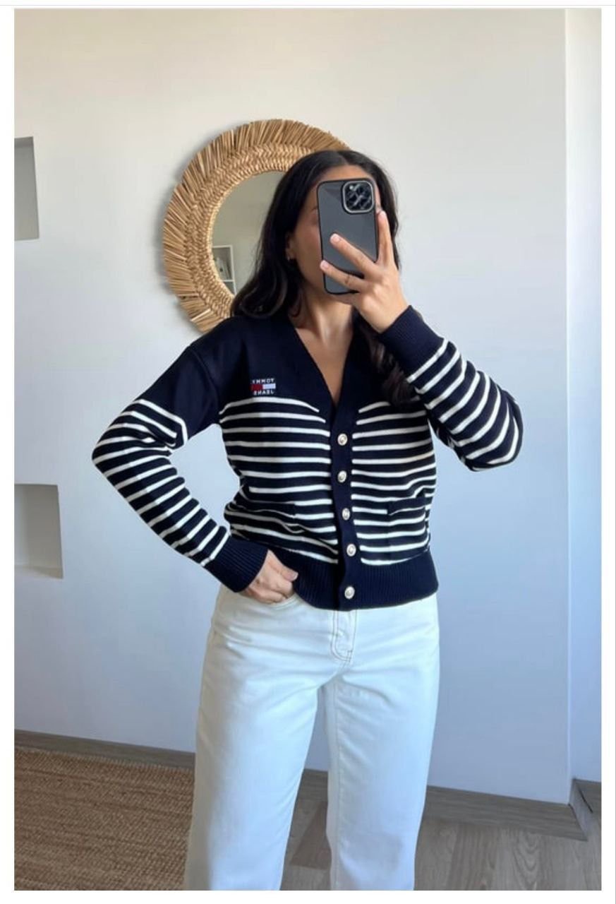 جارزة تومي باللون الأبيض والكحلي مخطط